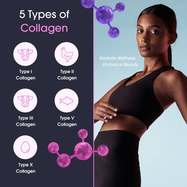 • Ingredients: Hydrolyzed Bovine Collagen, Chicken Bone Broth Collagen, Bovine Bone Broth Collagen, Hydrolyzed Fish Collagen, Eggshell Membrane Collagen, Greenselect Phytosome Green Tea Leaf Extract, Caffeine (from Green Tea Leaf Extract), Coconut Oil Powder, Gelatin (Capsule), Magnesium Stearate, Silicon Dioxide