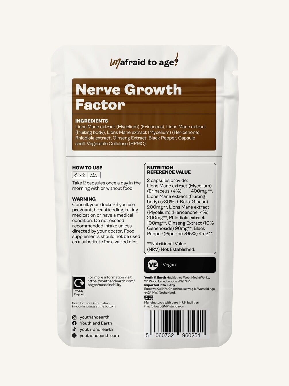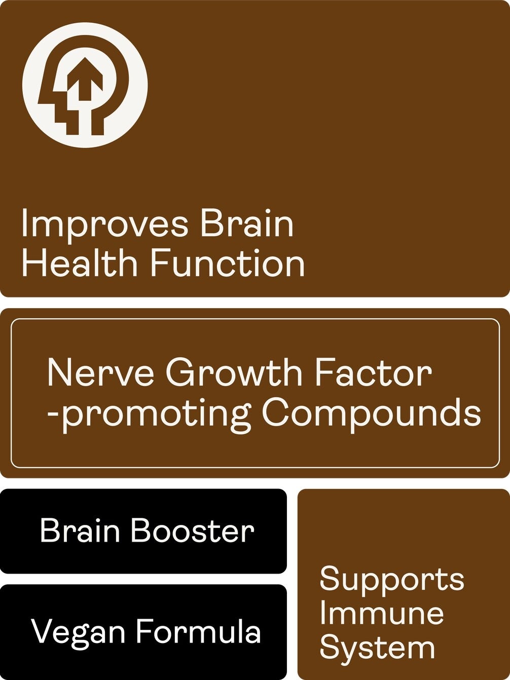 NGF is a high-strength dual extraction, full-spectrum Lion's Mane extract from the fruiting body of the mushroom. Each serving includes the Nerve Growth Factor (NGF) compounds, 1% Hericenones and 4% Erinacines which can cross the blood-brain barrier, and also the immune-modulating Beta-glucans tested to be over >30%.